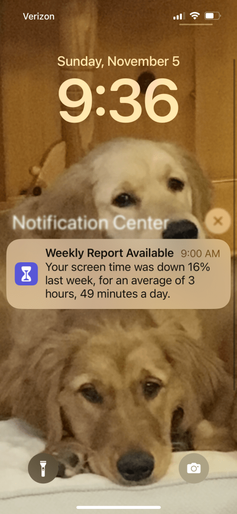 As a result, I look forward to 9 a.m. every Sunday morning, when the Weekly Screen Report appears. This week, I’m proud to share – I was down 16%! The time though, still says I’ve been using my screen 3 hours and 49 minutes a day. In my defense, a lot of that is spent emailing from my phone – from inside my locked car – at a Thruway rest stop (with my coffee nearby). It’s become a fun challenge with some of my kids to see who drops and who increases.
